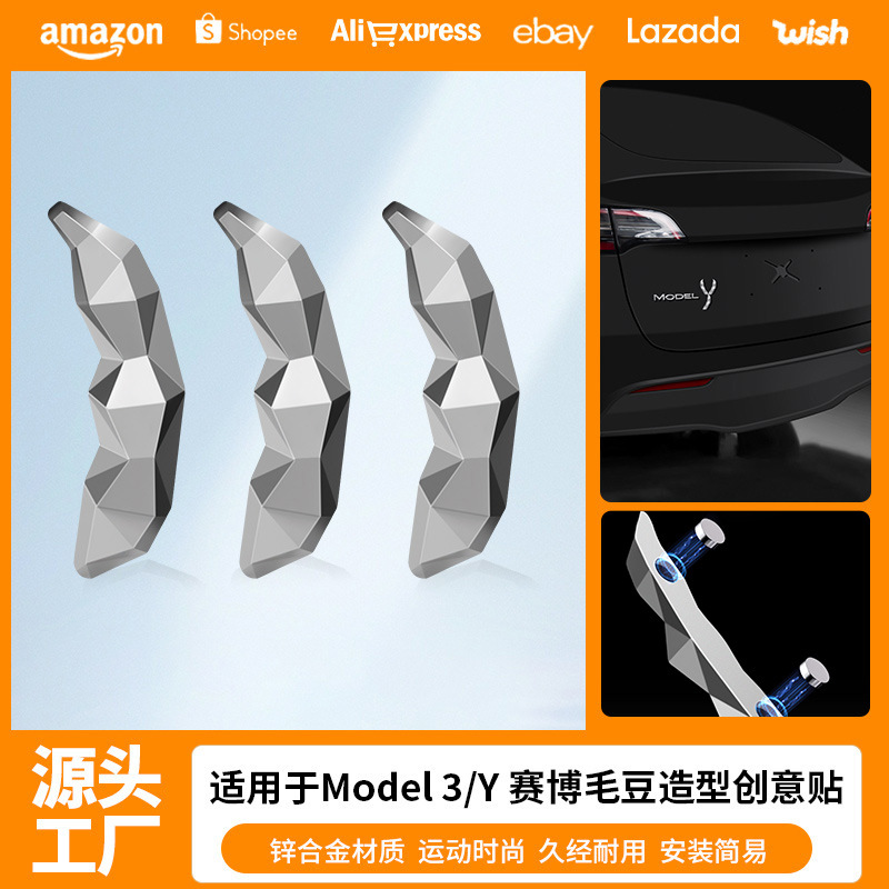 テスラ熙新版ModelY/3/S/Xサイボー枝豆金属尾ラベル車内装飾部品に適用