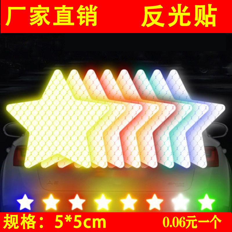 工場直販反射ステッカー電動バイク安全警告ヘルメットステッカーテールボックス車五芒星反射ステッカー
