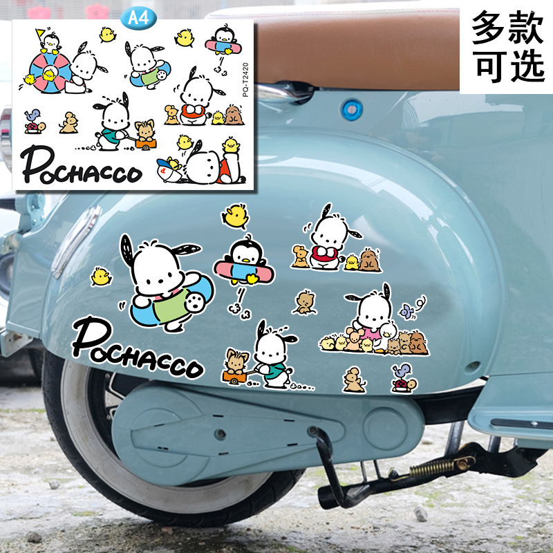 パチャ犬アニメかわいい電気自動車は車体の側面の車頭の個性的な装飾に傷をつけて車のシールを隠す