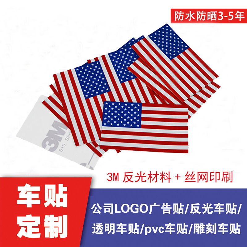 アメリカの車にはアメリカ国旗の反射シールが貼られています