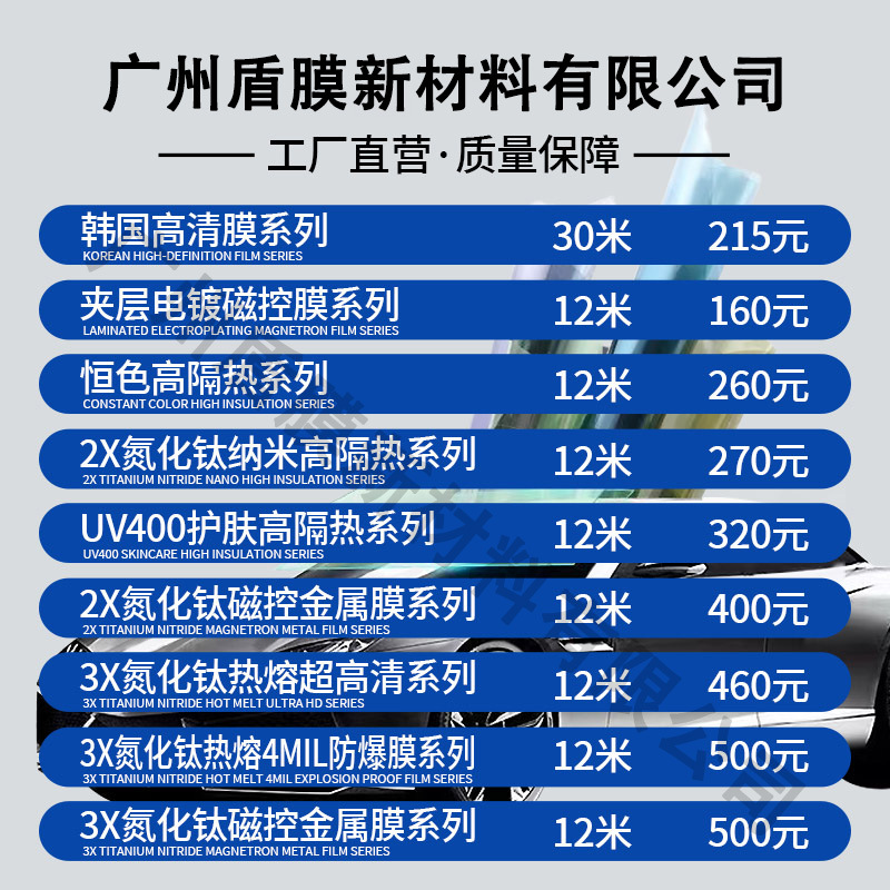 車用サンフィルム卸売 高断熱フィルム ガラスフィルム 防爆フィルム スキンケアフィルム 車フィルム 全車フィルム 安全防爆