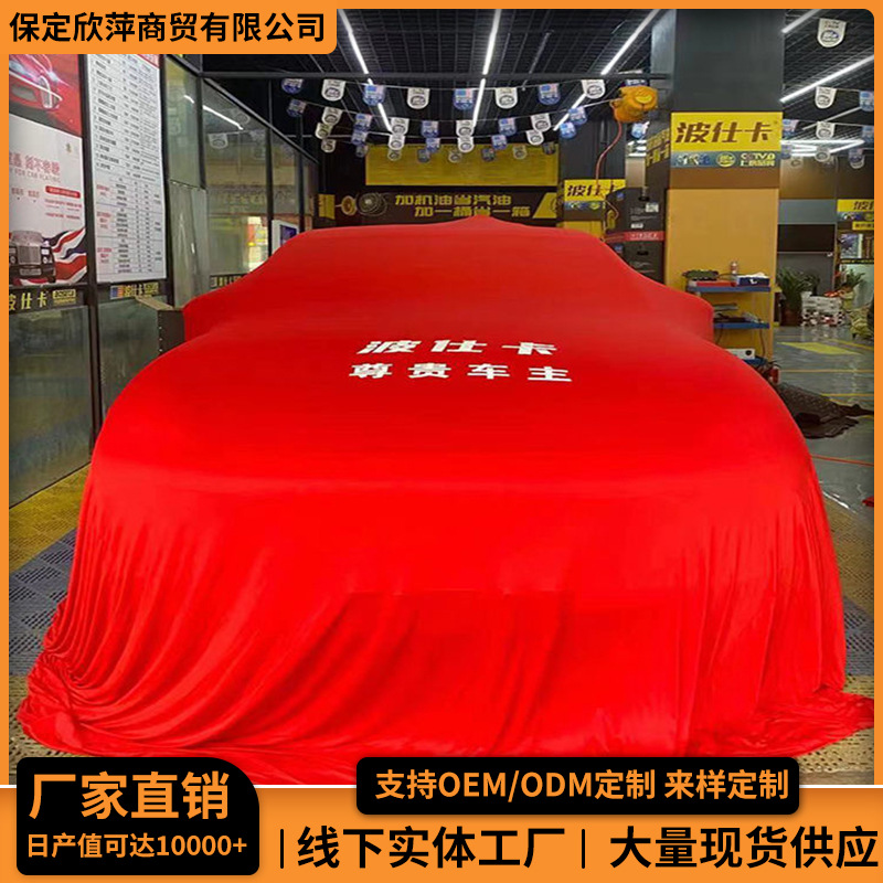 自動車4S店、車展示会、美容店、新車納車式、開店式、伸縮性のある赤いカバー、車カバー、車体カバー
