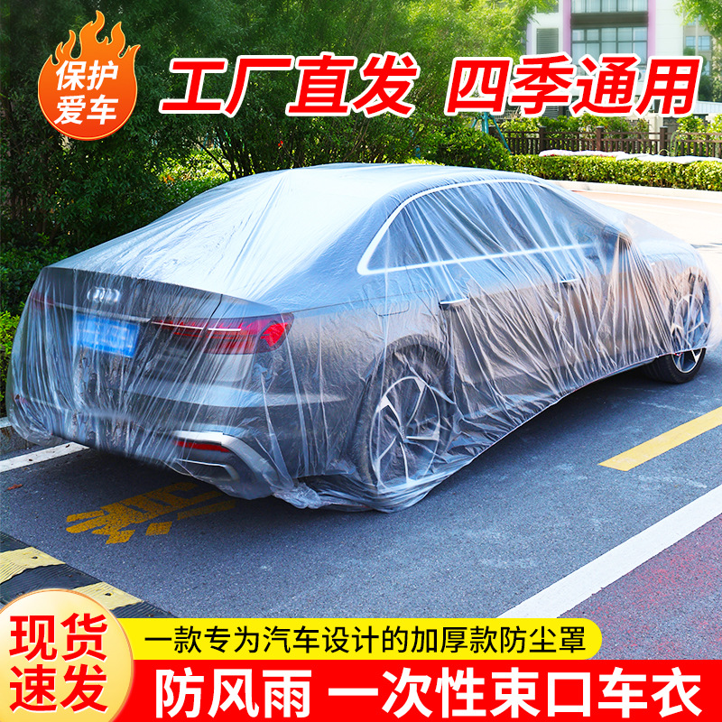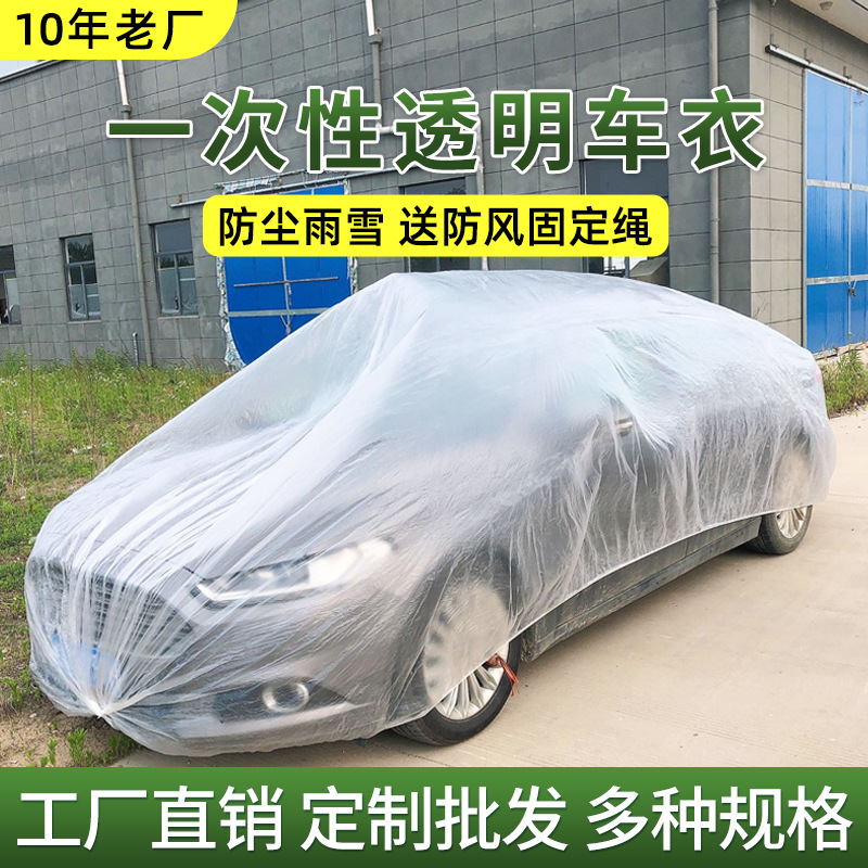 使い捨て車服防塵カバー日焼け止め防雨プラスチック透明車カバー汎用簡易塗装車カバー