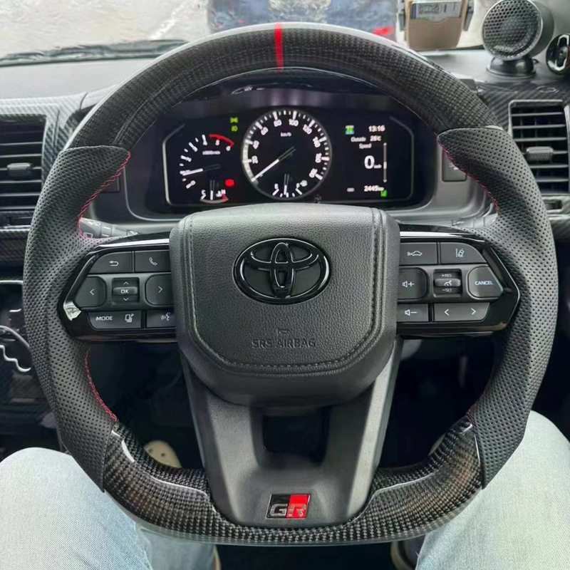 LC アルファ 80 シリーズ ハイラックス ハイラックス ランドクルーザー クラウン カーボンファイバーパターン ステアリング ホイールに適しています。