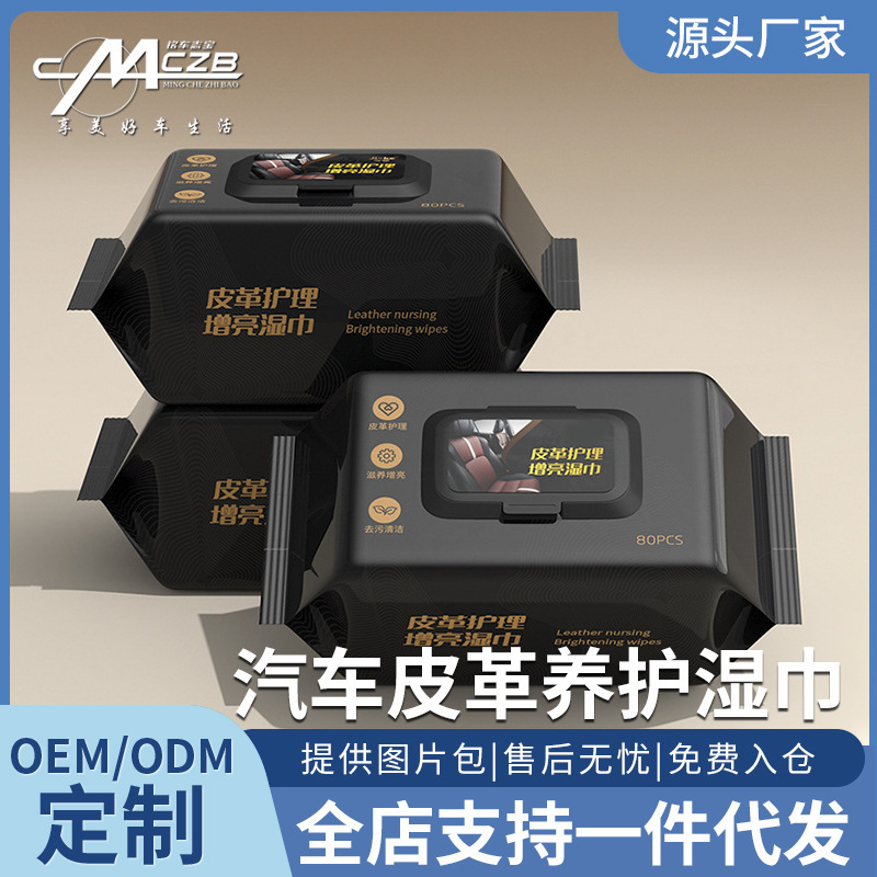 新車革製品ケアウェットティッシュ、革衣類、革靴、革バッグ、汎用革製品メンテナンス、光沢増強ウェットティッシュ、革製品再生