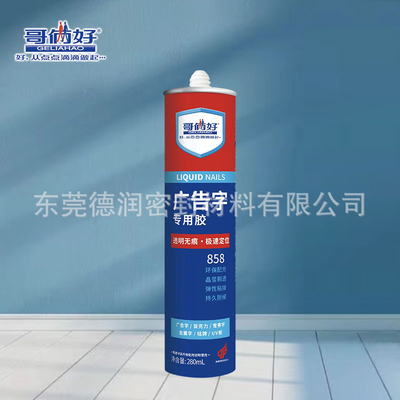 Brothers Good 858 広告ワード特殊接着剤、透明、痕跡なし、迅速な位置決め、環境に優しい配合、クリアで長持ち、耐候性