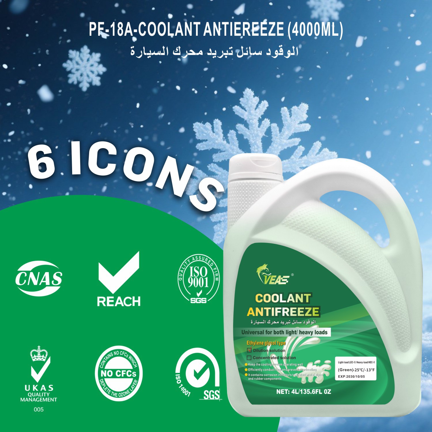 工場 OEM カスタマイズされた 4L 長期持続不凍液グリーン ユニバーサル -25 ℃ 水タンク宝 エチレングリコール冷却液 冷凍液