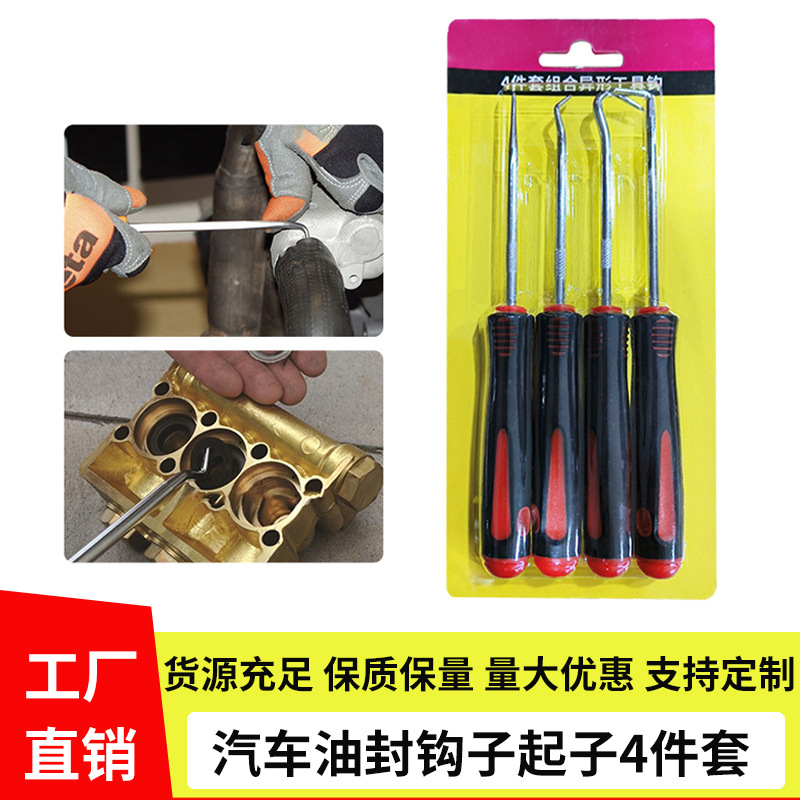 自動車オイルシールフック4点セット オイルシールドライバー ロングフック O型シールリングプーラー 車修理整備工具