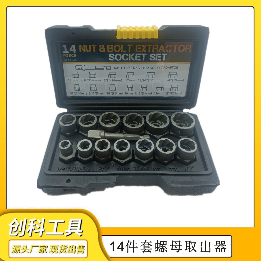 ナットハイエクストラクター、逆ネジソケットツール、スリップネジ、破損した工芸品、家庭用アクセサリー、金物14点セット