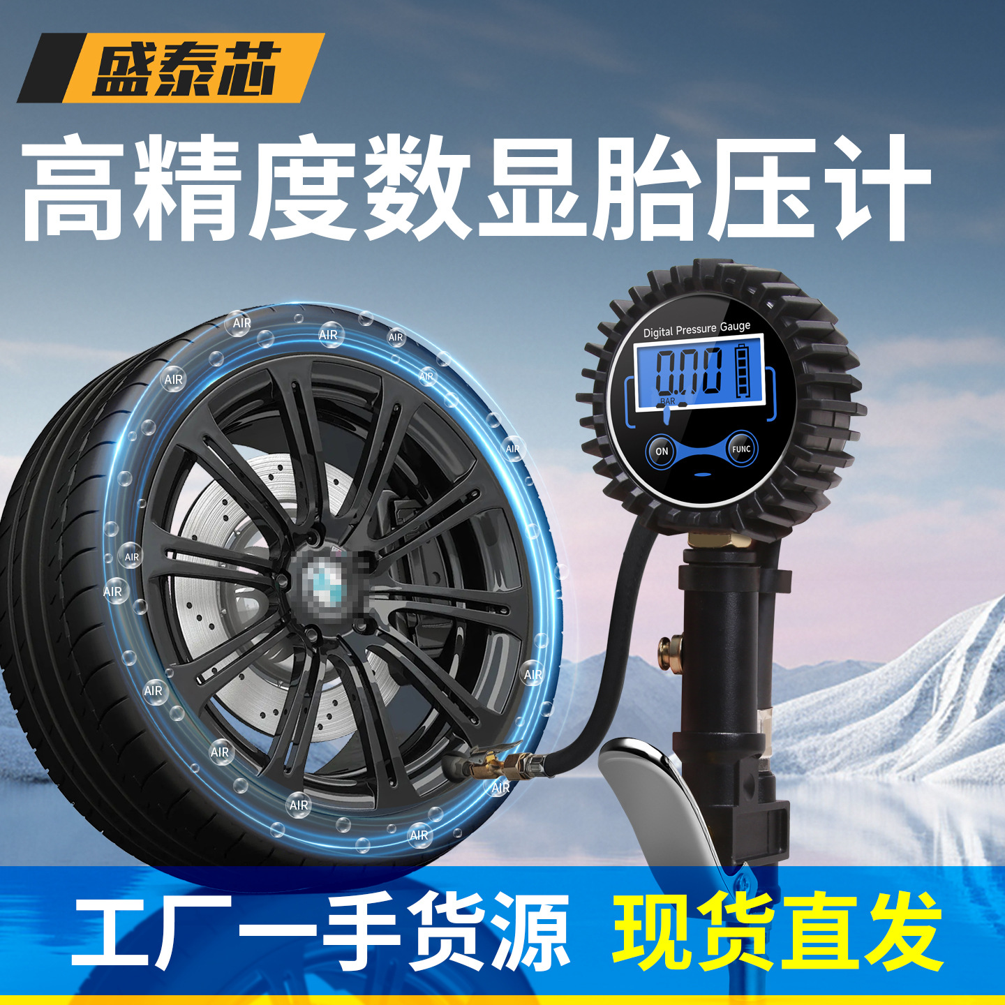 数显加气枪胎压表轮胎监测器高精度胎压计充气枪压力表车用车载