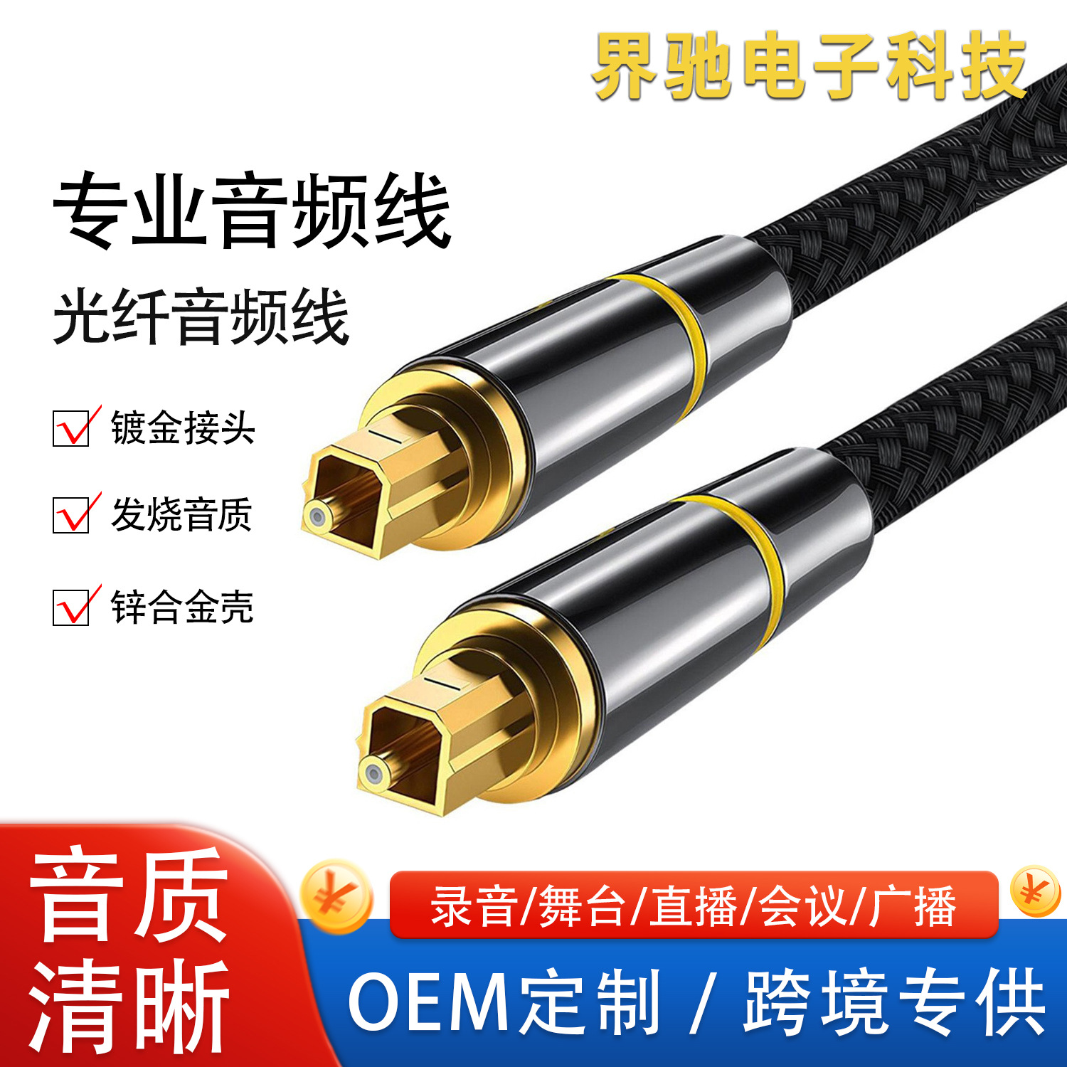 工場はデジタル光ファイバオーディオ線SPDIF出力線アンプスピーカー5.1チャンネル光ファイバケーブルを供給している