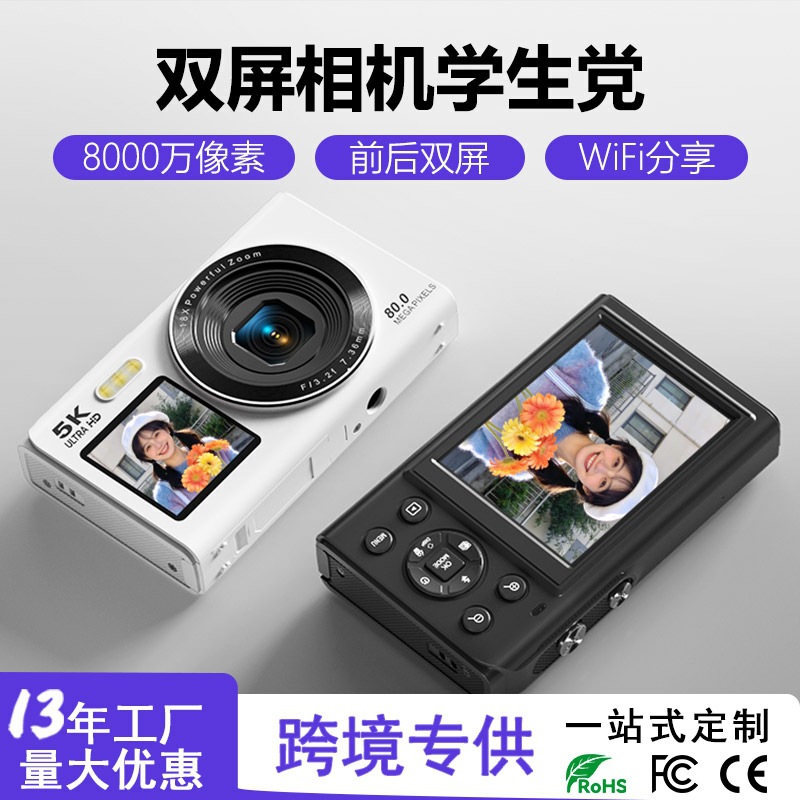 クロスボーダー専用 CCDデジタルカメラ 8000万画素 デュアルスクリーン セルフィー ポータブルカメラ 学生向け WiFi接続
