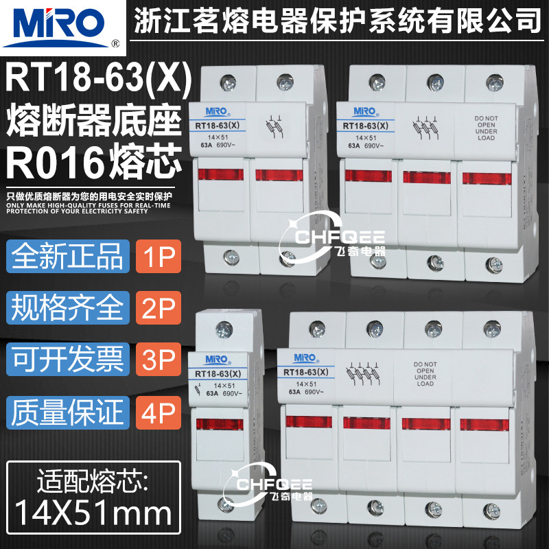 茗融溶断器ベースRT18-63X 1P 2P 3P 4P RT18-63 r 16 14*51保険シート