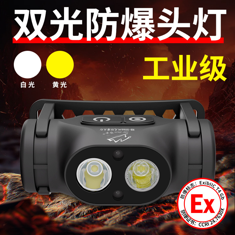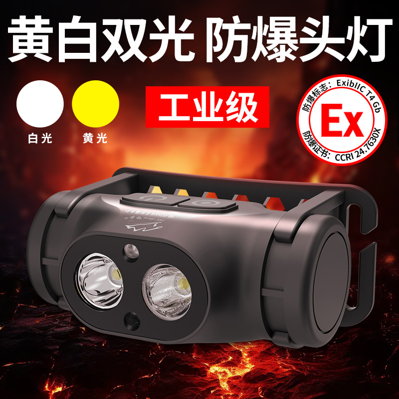 防爆ヘッドライト超明るい強光充電ヘッド装着式誘導黄色光ダブルライト屋外リチウム電池led鉱山労働者ライト