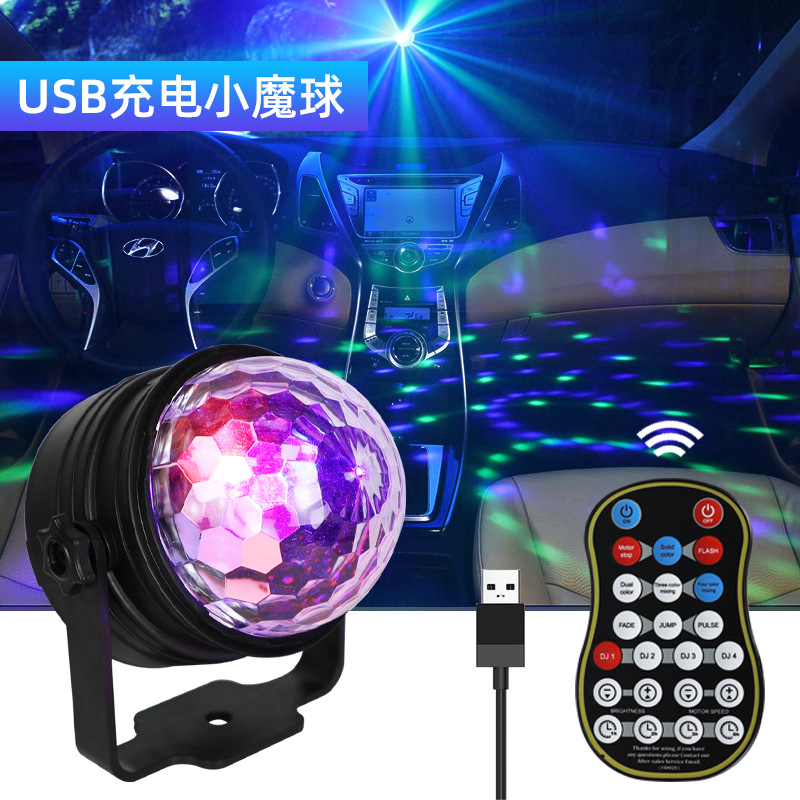 クロスボーダーカラフルリモコンミニ水晶小魔球カラーライトUSB音控車載トランポリン魔球舞台雰囲気灯