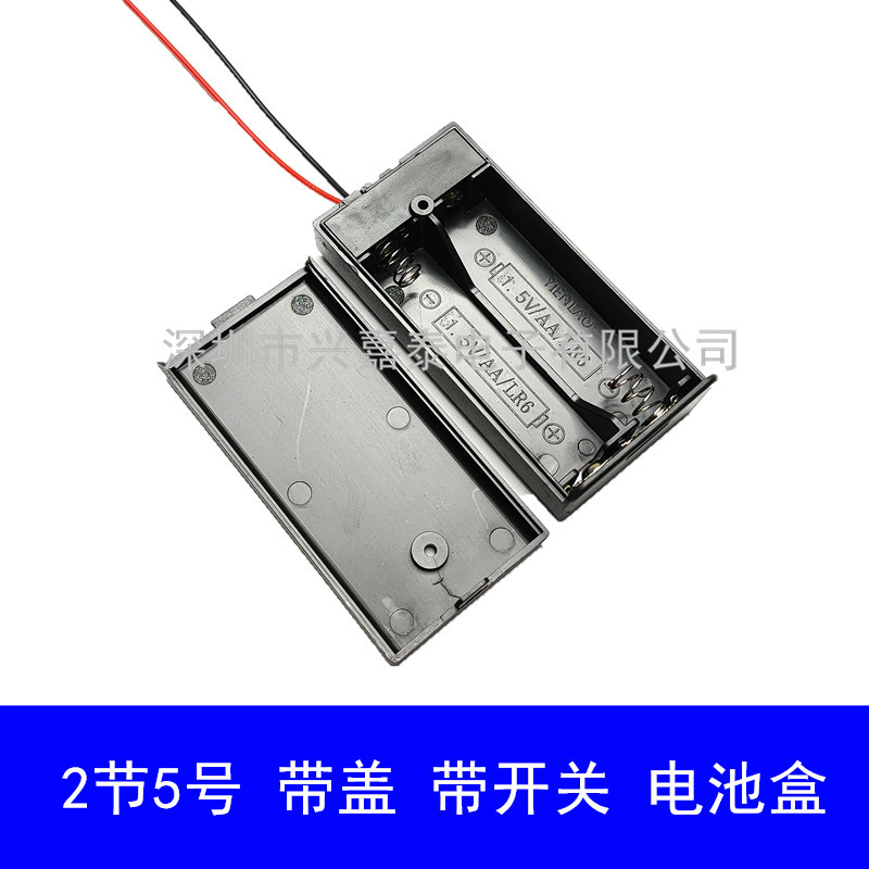 5番2本赤黒線付き5番2本電池ケース2桁5番aa 3vボルト蓋付きスイッチ電池ホルダー