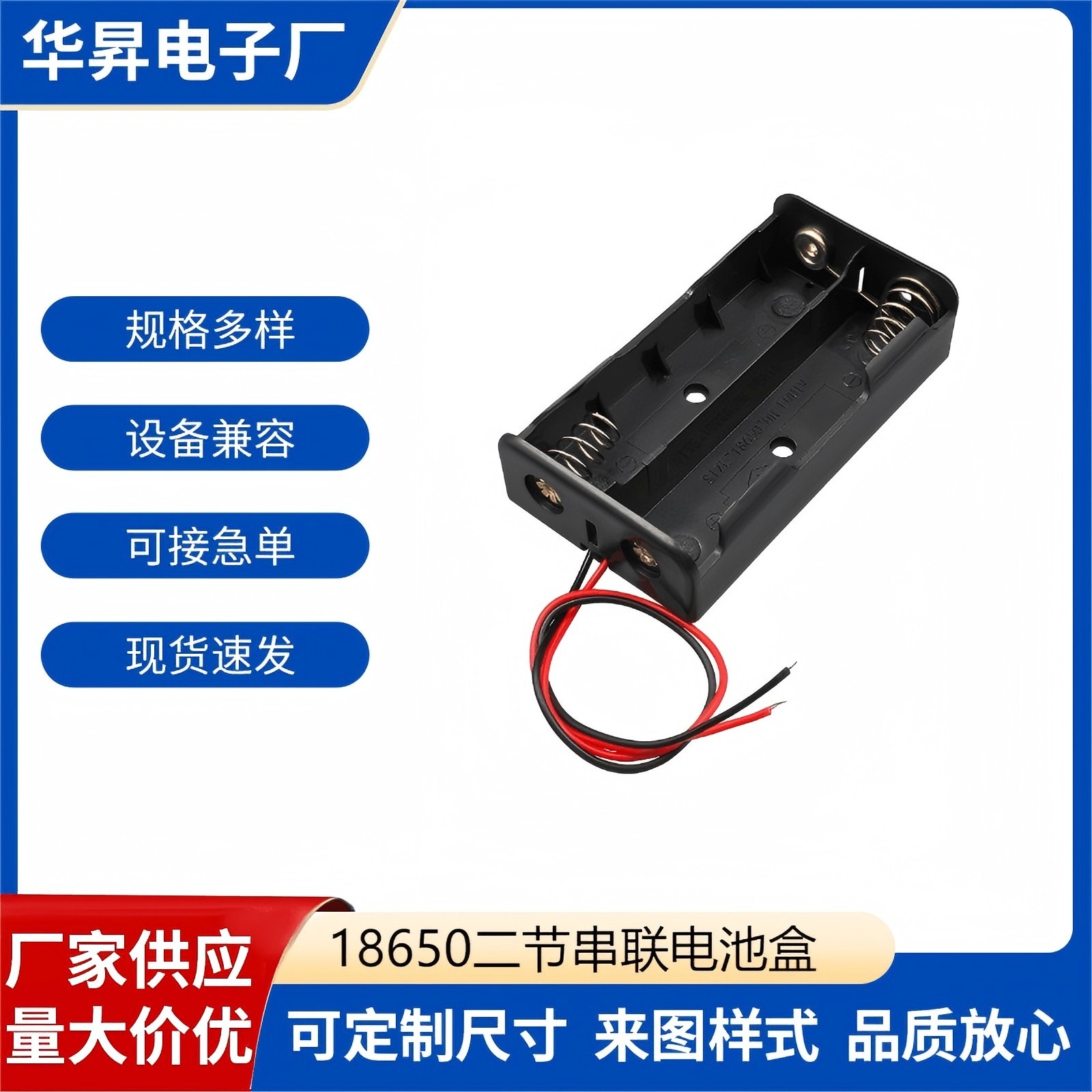 18650電池ケース直列電池ホルダー2本太い線付きDCプラグ付きカバー付き直列並列電池ホルダーメーカー