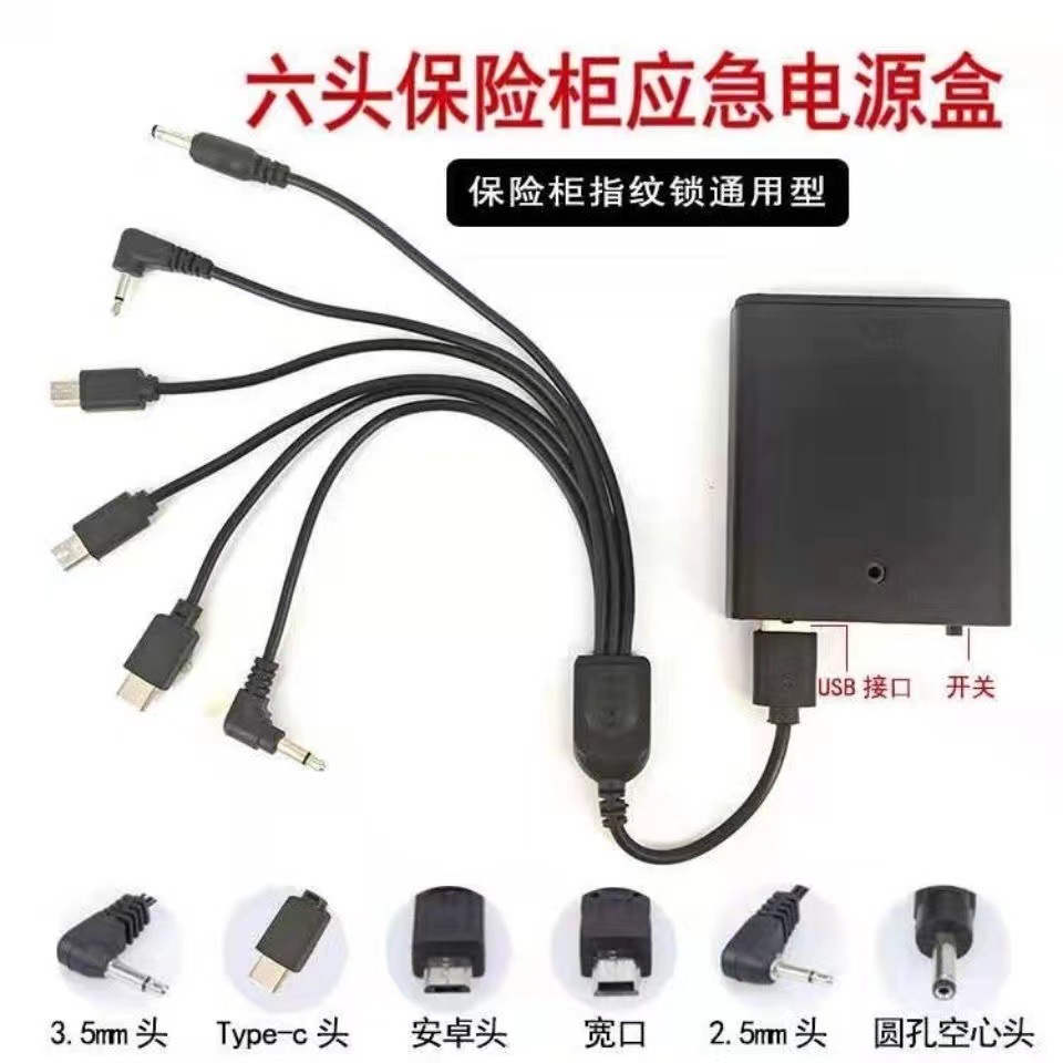 6頭の金庫の指紋ロック緊急電源ボックス多機能指紋ロック金庫の緊急外部電源ボックス
