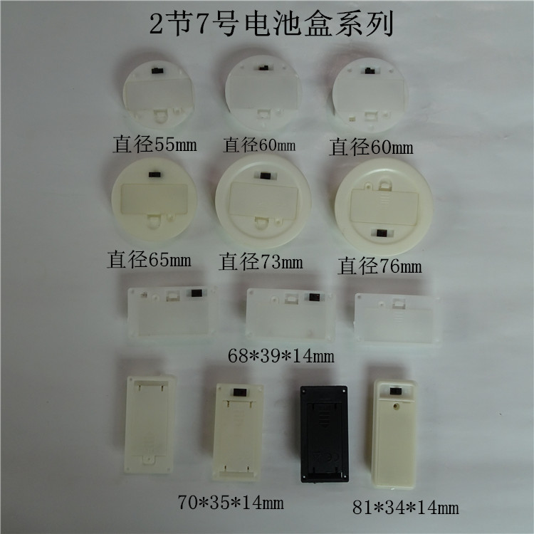 組み込み式蓋付きスイッチ付き角形と円形直径55mm 60mm 65mmの2本7番電池ケース