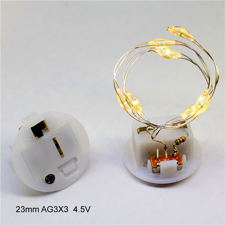 工芸品のおもちゃ箱、冷蔵庫用マグネット、ボタン電池ケース(直径23mm)、スプリングスイッチ、銅線、ライトストリング付き