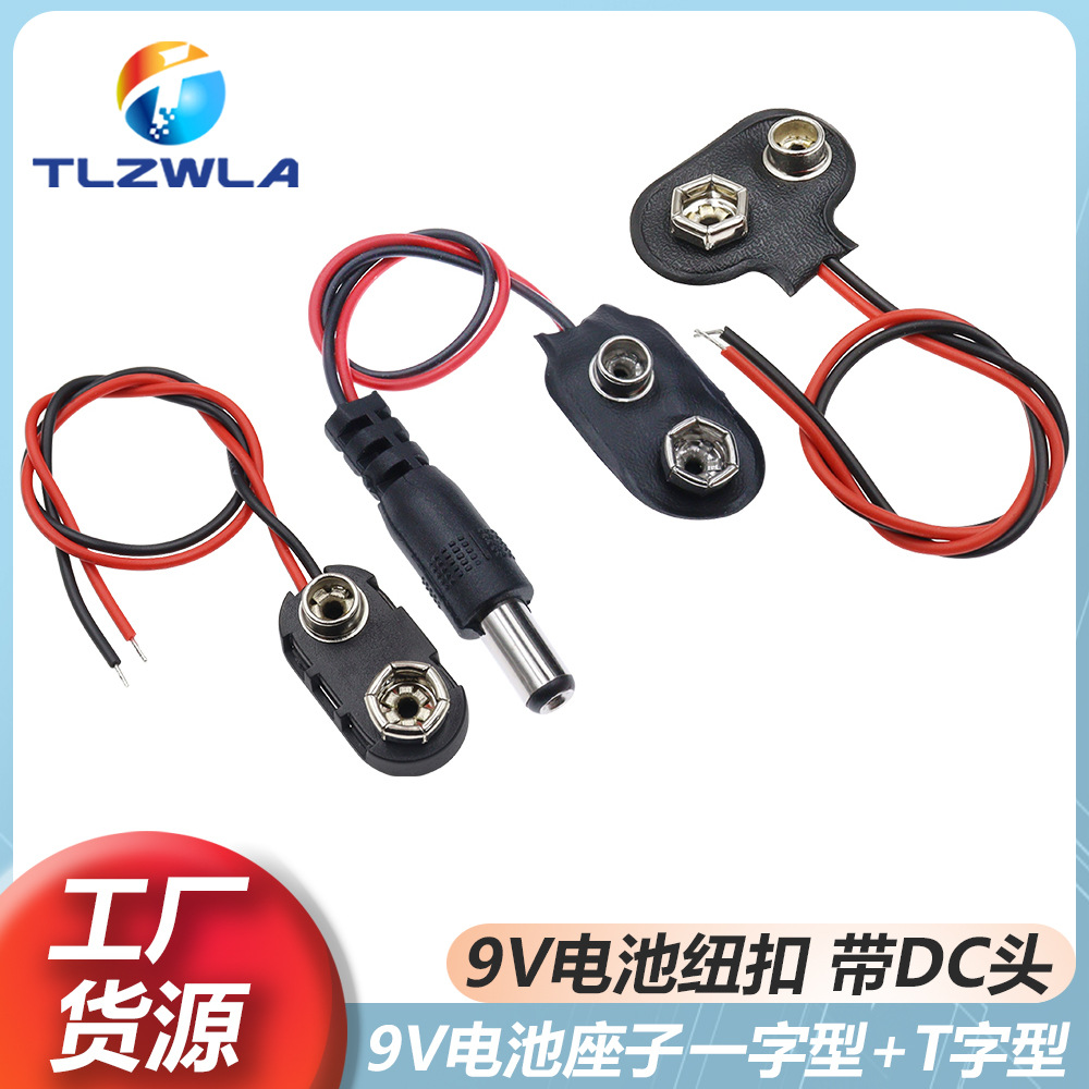 9Vバッテリーボタンリード線付長さ15CM T型/I型9Vバッテリーボックスバッテリーボタンソフトバックルハードバックル