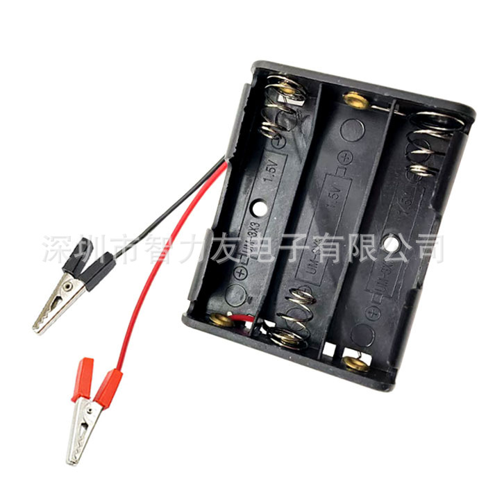 3節5番電池ホルダー蓋なしスイッチなし小短柄滑り止めワニクリップAA4.5V直列5番電池ケース