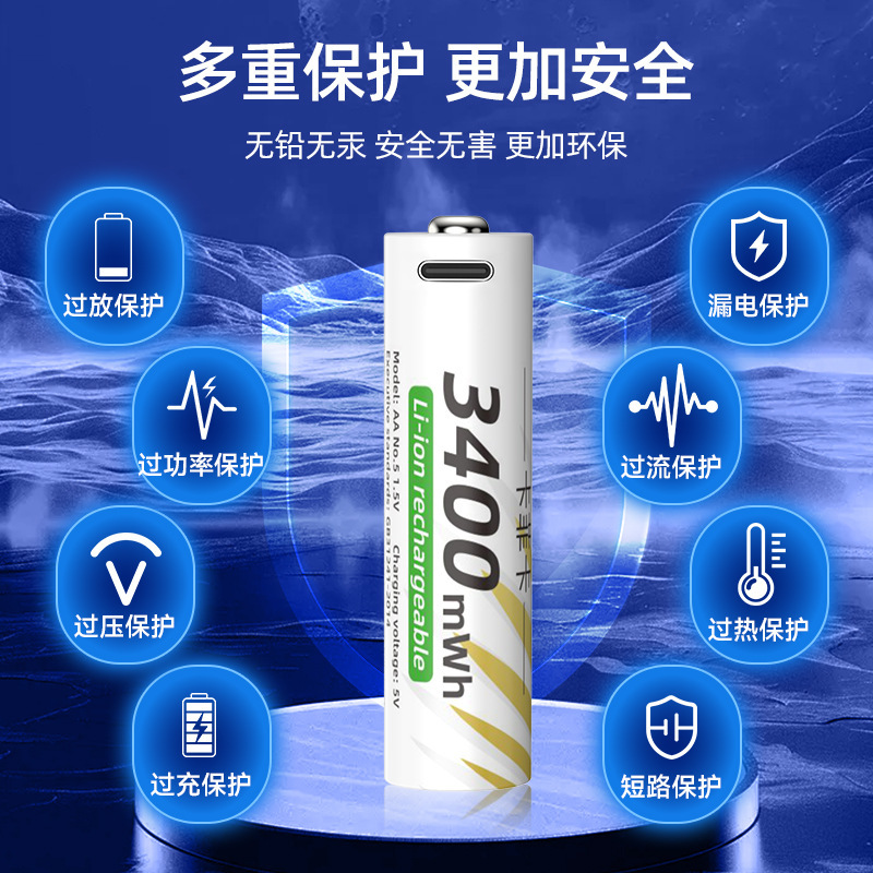 5番aa充電リチウム電池1.5V定電圧大容量typec急速充電携帯指紋ロックマイク玩具用