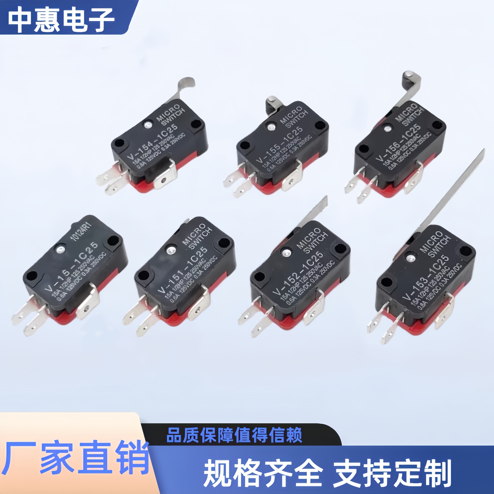 マイクロスイッチV-15シリーズ無柄長柄ローラーV-156-1C25ストロークリミットスイッチ