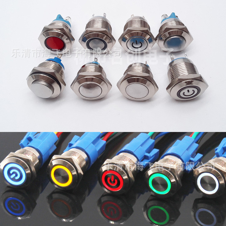 12mm金属ボタンスイッチセルフロック自己リセット点動スイッチledランプ付きステンレスボタンスイッチ