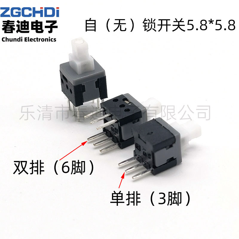 セルフロックスイッチ5.8*5.8高さ白単列3脚小型ロックなし電源スイッチ