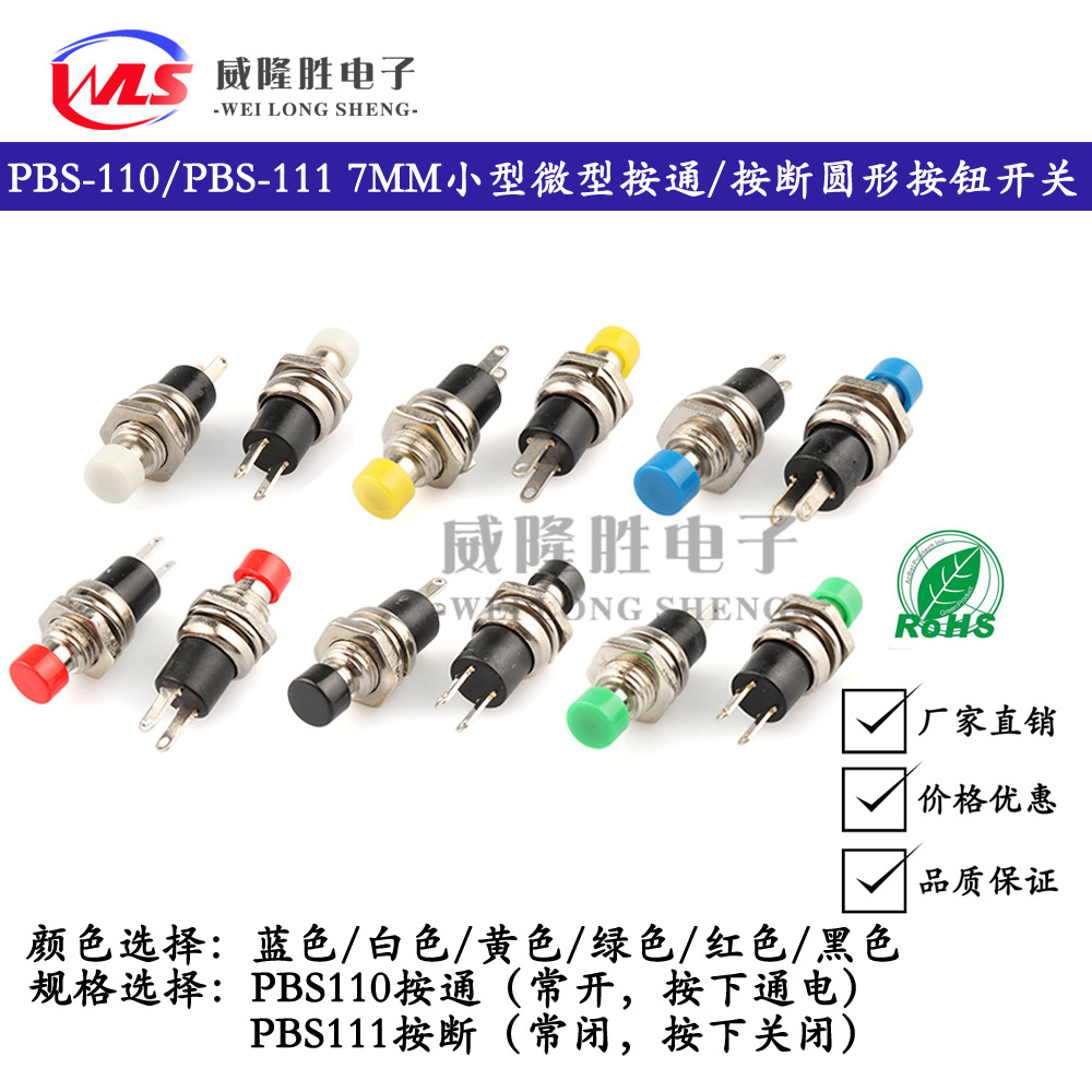 小型押しボタンスイッチPBS-110 7mm押しボタンPBS-105リセット点動ロックなしスイッチKAX-3
