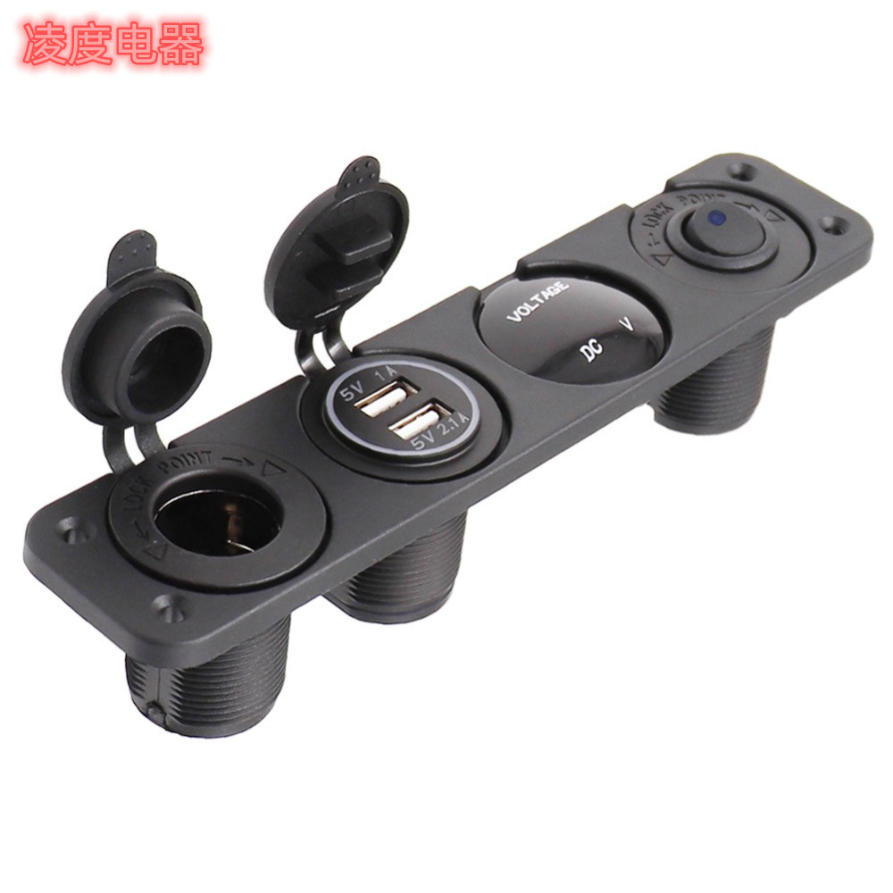 メーカー直販12vデュアルusb充電器付き防水デジタル電圧計スイッチ4セットシガレットライター