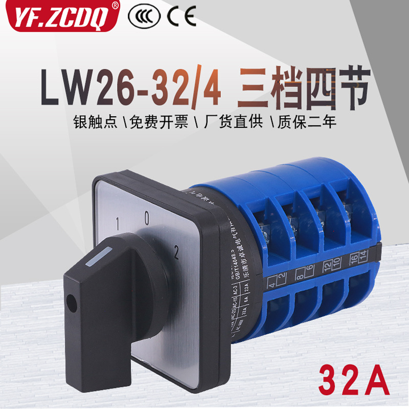 LW26-32/4 3速4節4線2電源切替モータ逆順高低速32a万能切替スイッチ