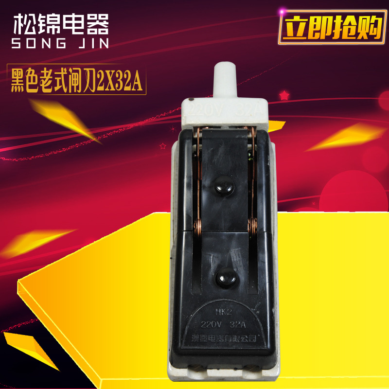 Kh2 2x32a旧式ブレードスイッチ220v二相黒色磁器底ブレードスイッチ刃ブレーキ負荷式スイッチ