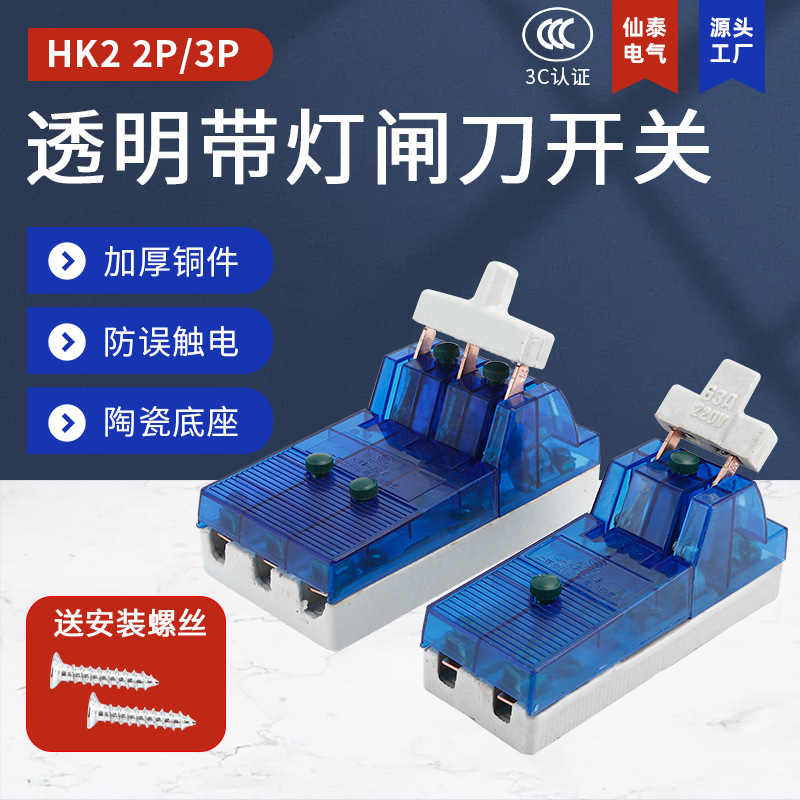 透明2x 32a負荷hk 1aゲートウェイ磁器底開閉式ランプ付き電源金属隔離スイッチ