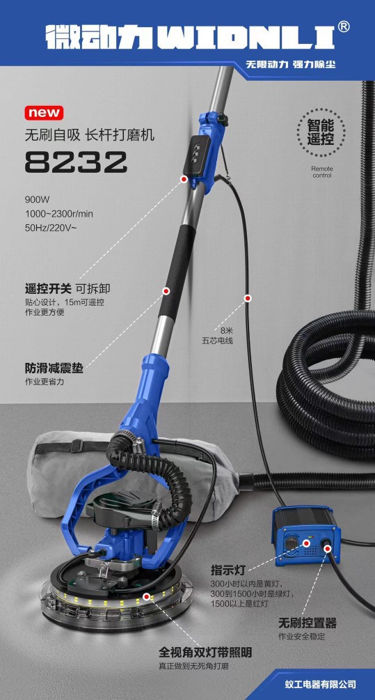 マイクロパワー8232ブラシレス自己吸引長棒壁サンダ知能リモコン全視二重ランプ照明研磨機付き