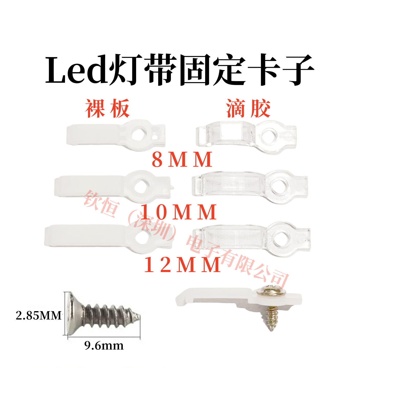 LEDライトストリップ固定クリップ 8mm10mm12mm透明曲線単穴ネジ固定クリップ シリコンスリーブクリップ