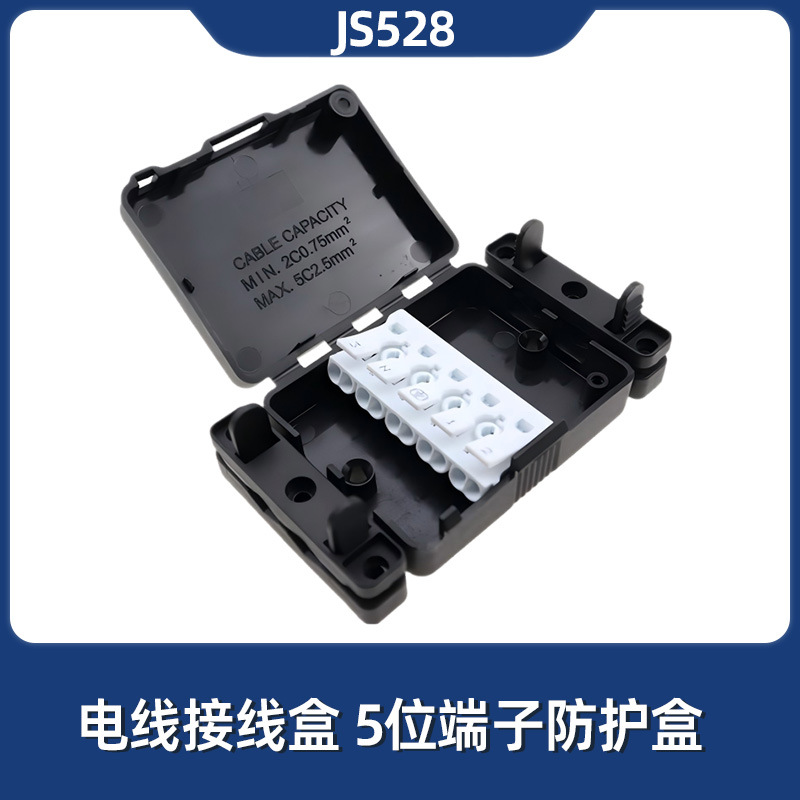 Js528五位接続箱5pダブル圧線端子箱美規五芯ケーブル無ねじセルフロック接続箱