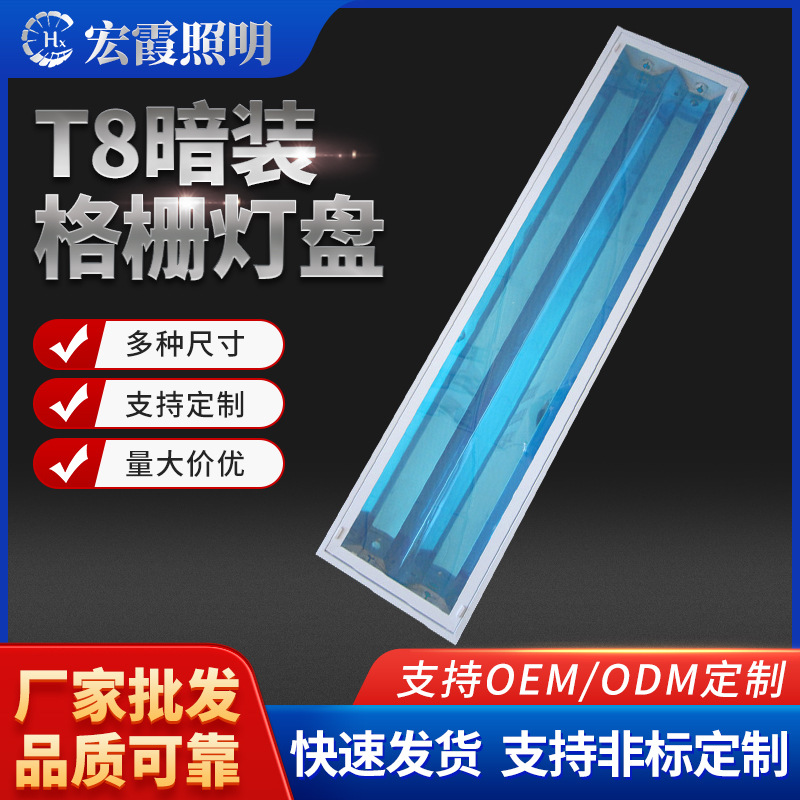 中山メーカーカスタムt8明装グリルランプ盤単単三管ランプ盤デパートオフィス埋め込みledスタンドランプ