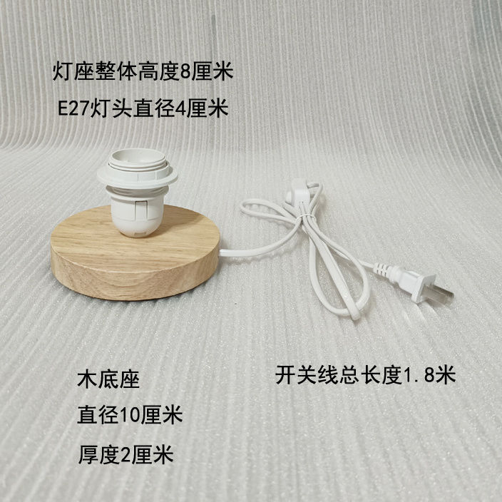 実木シンプル電気スタンドベースE27ベッドヘッドスマート電球ベースLEDソケットスイッチ付きDIYクリエイティブアクセサリー