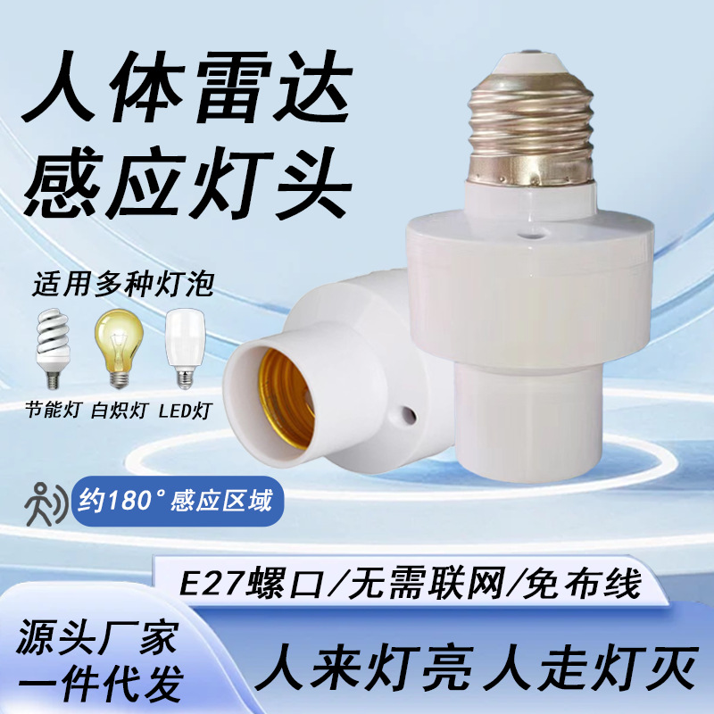 レーダー誘導ランプヘッドE27ねじ口通用階段通路車庫無配線スマート照明器具家庭用ランプホルダー