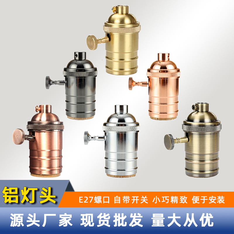 E27スイッチ付きアルミランプヘッドレトロねじ口シャンデリアランプヘッドe26二重リングランプヘッド逆口ランプカバー金属スタンド