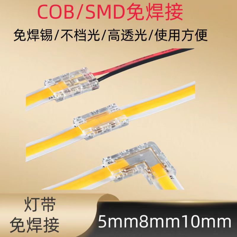 Smdライト付き溶接フリーcob8mm10 mm幅2pin低圧単色三色変光ライトコネクタ