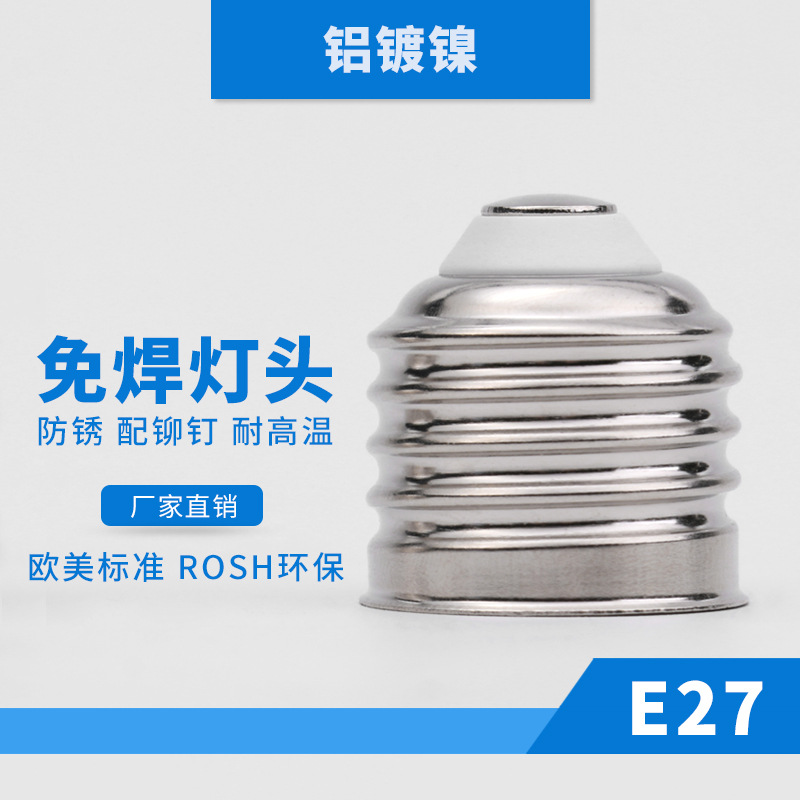 メーカー直供E27アルミメッキニッケル無溶接ランプヘッドE27アルミメッキニッケルランプヘッドE27ランプヘッドアルミランプ難燃材料