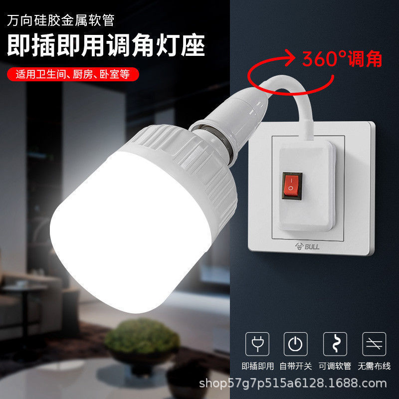 新型家庭用e27ネジ口自在ホースソケット無配線プラグ式ランプヘッドledプラグソケット