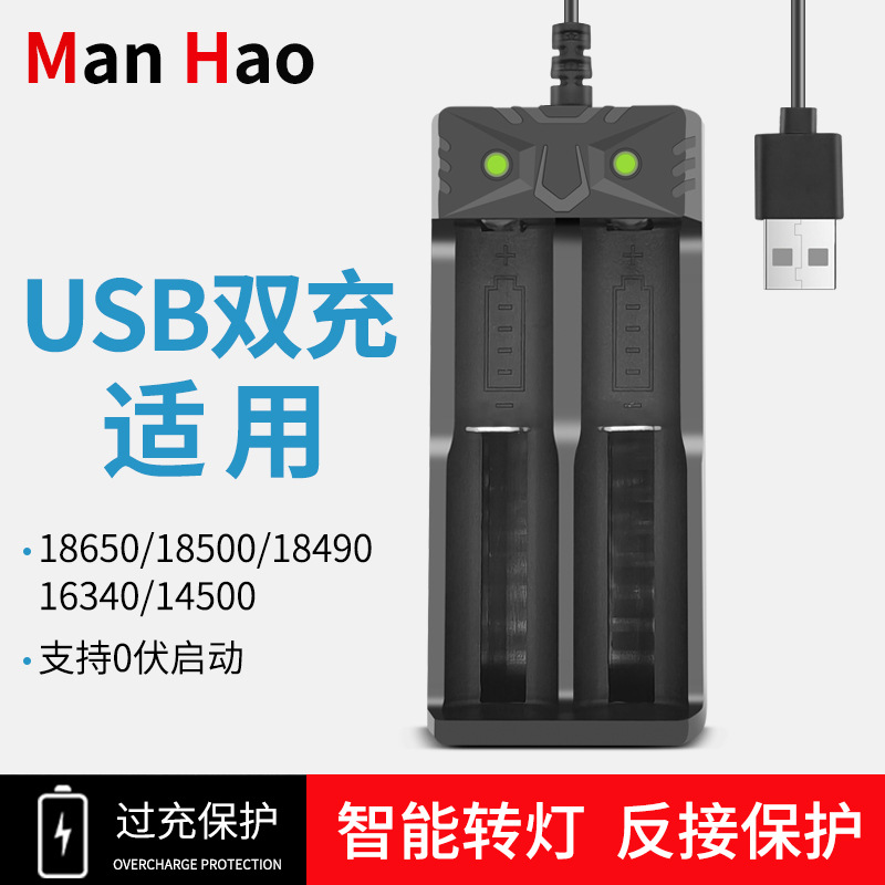 18650リチウム電池充電器スマートusbダブルスロット充電3.7vヘッドライト強光懐中電灯スマートダブル充電器
