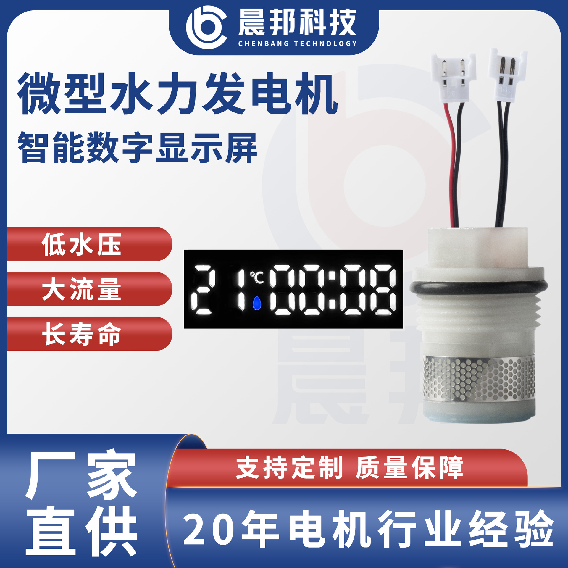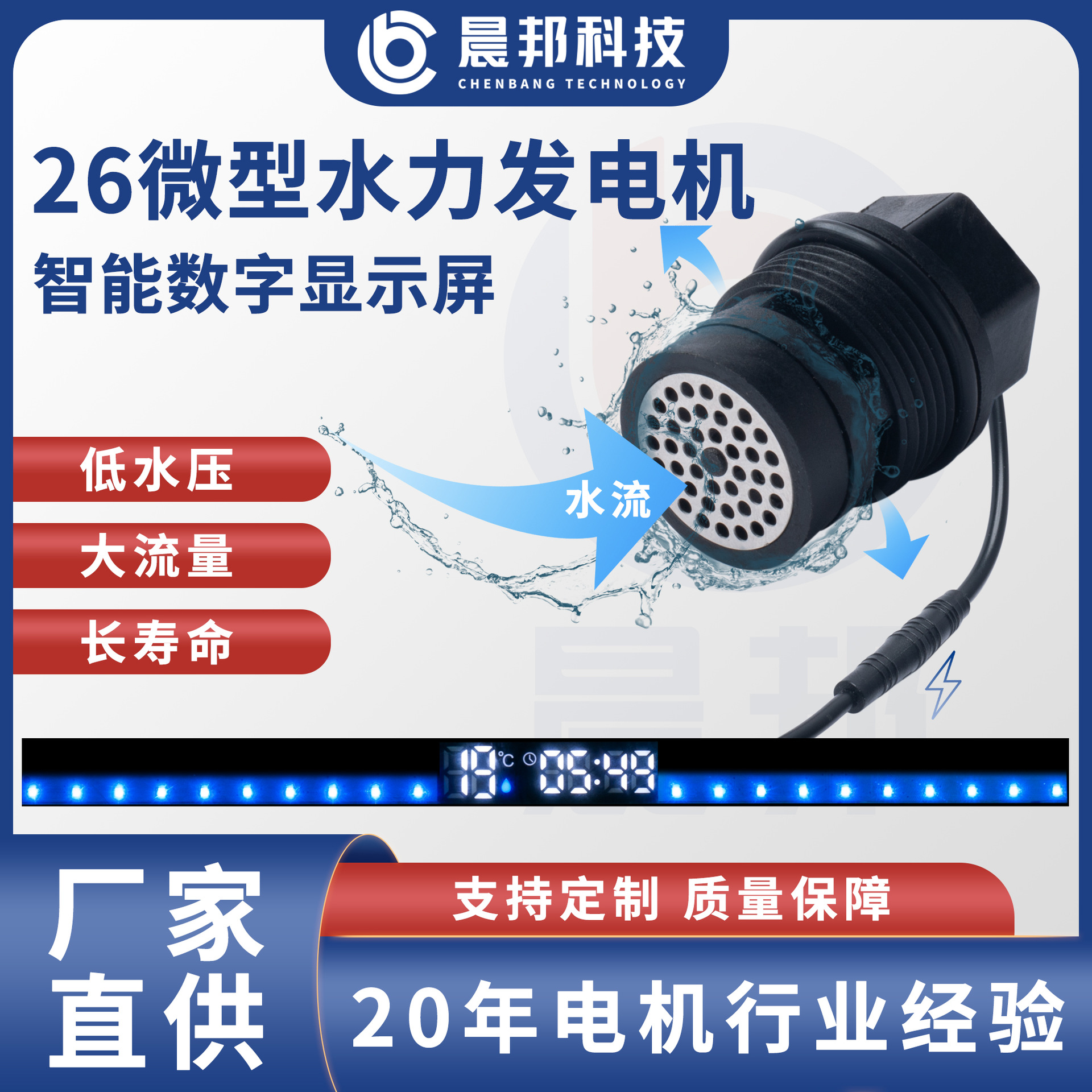 晨邦m26底進入側進風呂ミニ水力発電機感応花こぼれスマート温度制御デジタルスクリーン