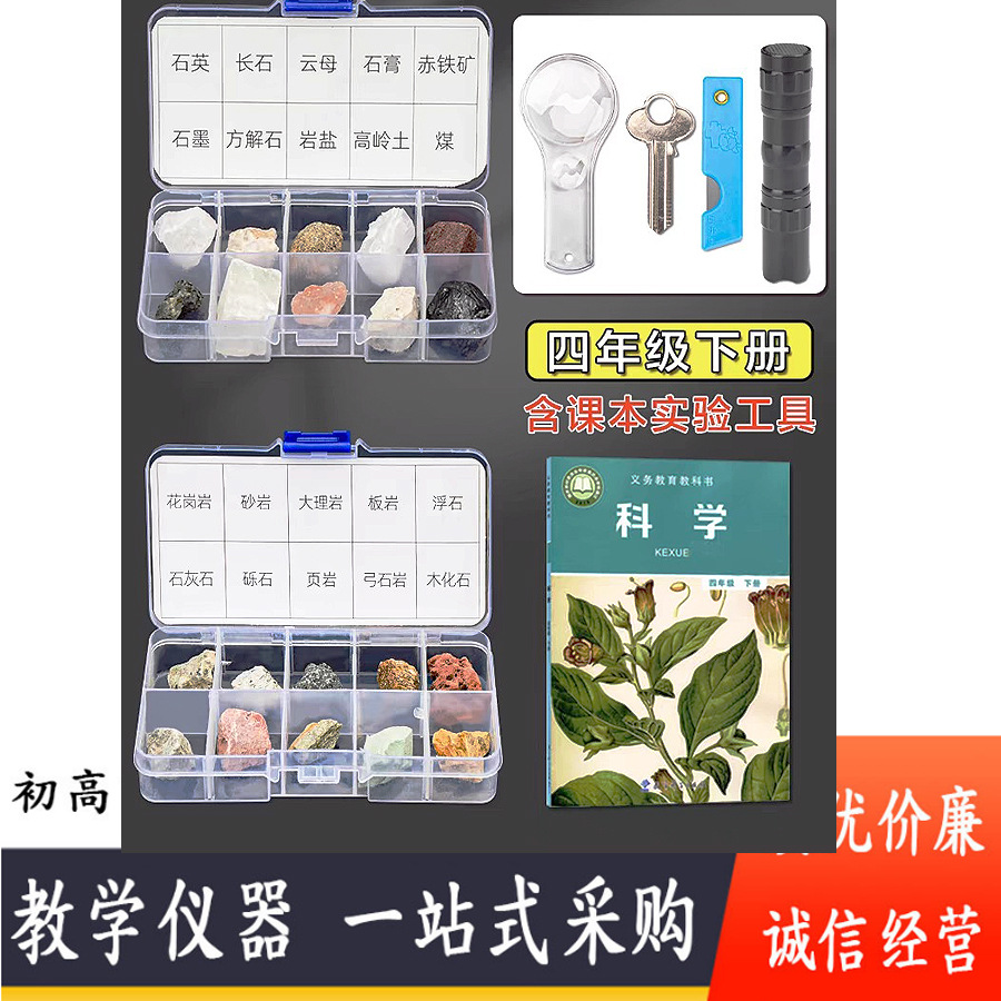 4年生科学下巻小学生鉱物岩石標本箱学生用岩石標本10格装鉱物