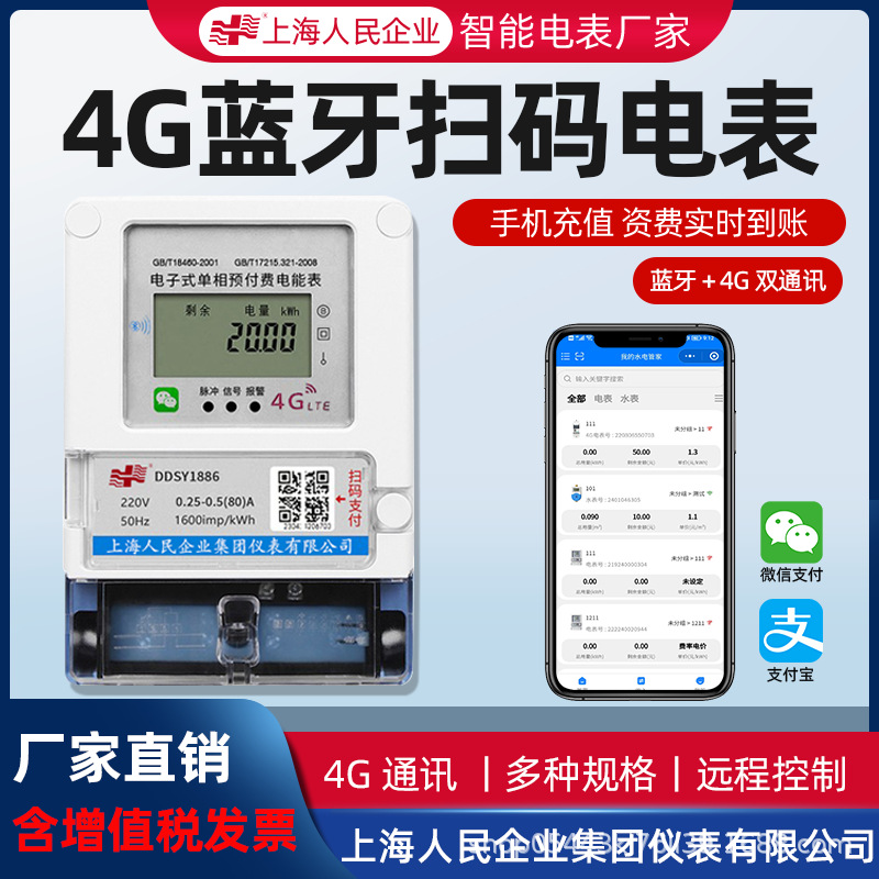 上海人民 4G リモート携帯電話 Bluetooth スキャンコード充電賃貸住宅プリペイドスマートメーター