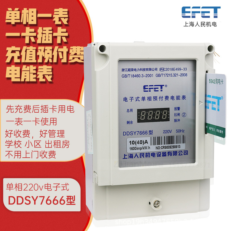 上海人民電気機械 DDSY7666 単相プリペイド電力量計カードデジタル表示電力量計プロパティ充電メーター